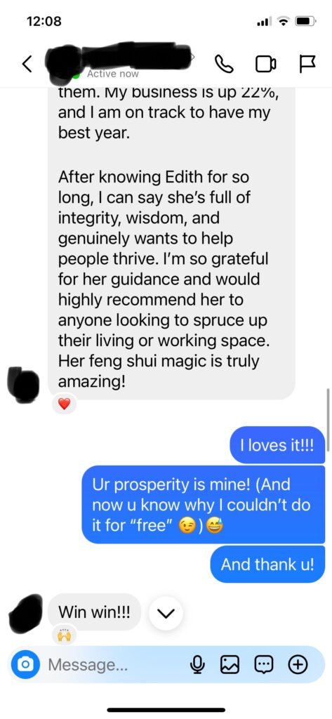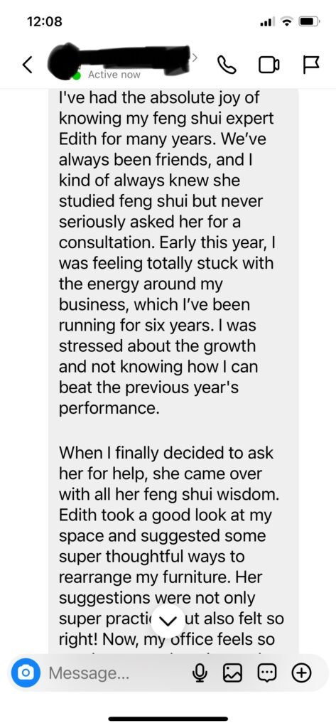 While she is generally doing OK, but overtime she felt dragged down and needed to chase a lot to keep her business going. From a feng shui master’s perspective, if energy and flow comes to you easily, opportunities and money will flow your way as well. When you achieve this kind of smoothness in life, a lot of the self questioning/doubts would go away.