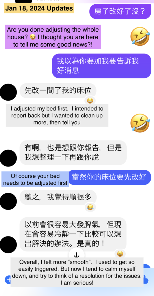I proceeded with the adjustments, and within a few months she reported back that things had gotten “smoother”. She mentioned the arguments have significantly decreased and before saying anything, she’d calmly think about things. Even if they get into arguments, both sides will try to come together to resolve the issues, as opposed to blowing things out of proportion (this is all natural, without any therapy session… simply by adjusting bed placements, as you would see in many of my other testimonials, they experienced more “calm” in life and even in previously volatile situations, they are able to better manage their emotions without other medical interference).