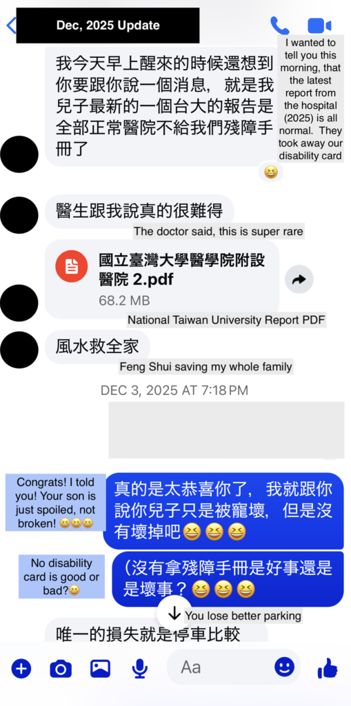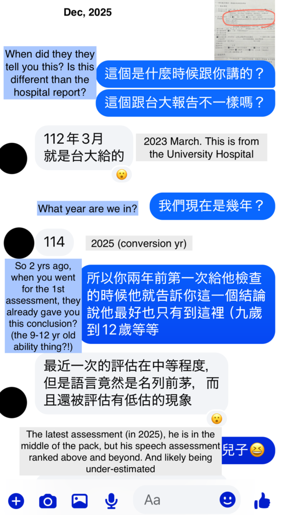 - E: If the special education is THIS good & this transformational – other than her son, are there even a handful of kids in his class that got this superior jump in their new annual assessment scores? Her: “No, just him (she mentioned this kind of improvement is not an easy feat” (2024 response). In the 2025 update, my client mentioned that all the kids in her son’s school received similar assessment scores from the hospital from the years prior – mostly no change. In the last medical assessment in 2025, her son does not require anymore future reassessments in the future and his disability privileges have been revoked.