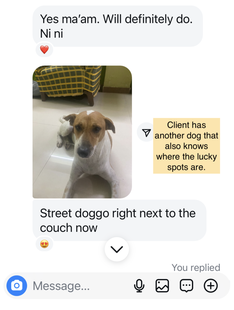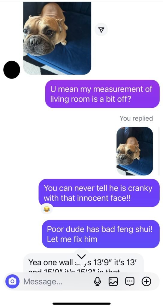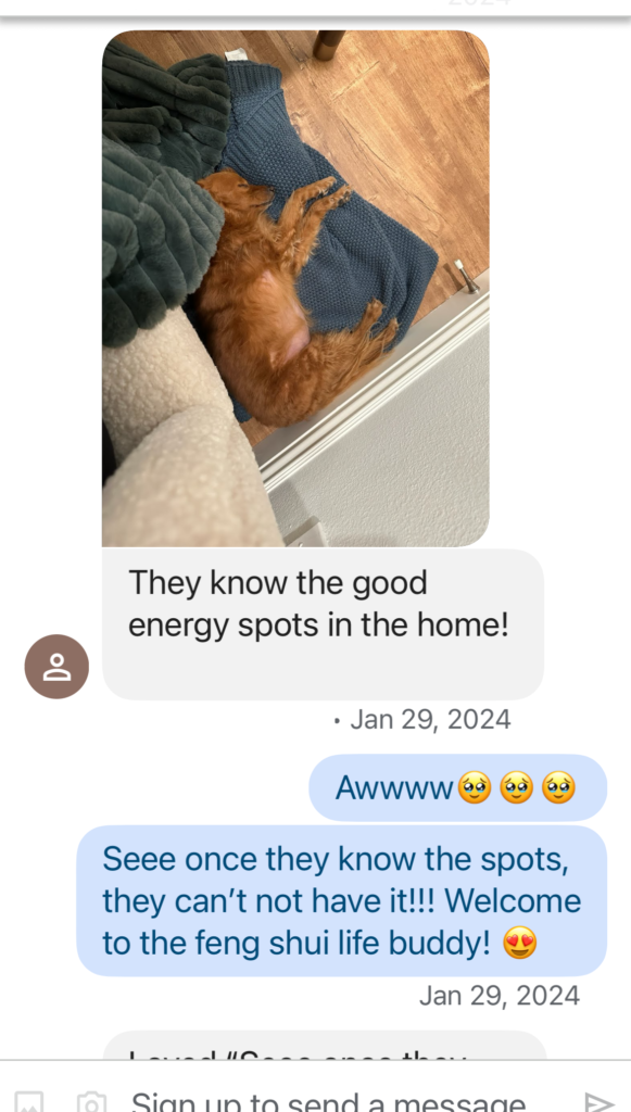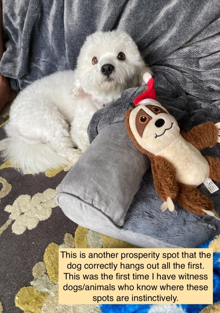 I wouldn’t have believed it until I’ve witnessed this myself multiple times through various readings in different spaces. This client has two feng shui doggos that can accurately land on the prosperity areas of a home every time they are being adjusted (they were not even invited or present on the calls). They are naturally prosperous and likeable people telling them what to do.