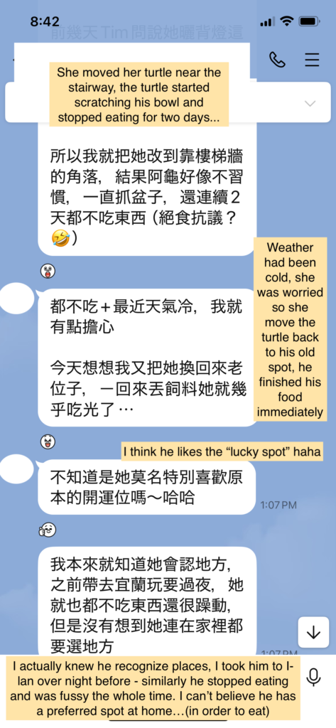 This turtle only eats and lives normally when his tank is placed correctly in the prosperous area of the home. We observed this over months and months, and accidentally discovered his hunger strike tendencies when his tank wasn’t placed correctly. His tank was moved a few times for different reasons, whether his owner took him on vacation (he hated it), or moved his tank to a different spot in their home. She noticed he would start to panic and wanted to escape (not calm like his normal self). Subsequently, she observed he would stop eating altogether to protest his unhappiness. To a point, one time she had to cut her vacation short to bring the turtle home. Once you place the turtle back at his prosperity spot, each time he would immediately stop his hunger strike – he devours his food as soon as he lands back onto his happy spot. The prosperity spots are previously identified spots in my reading (these are not made up spots, they are identified).