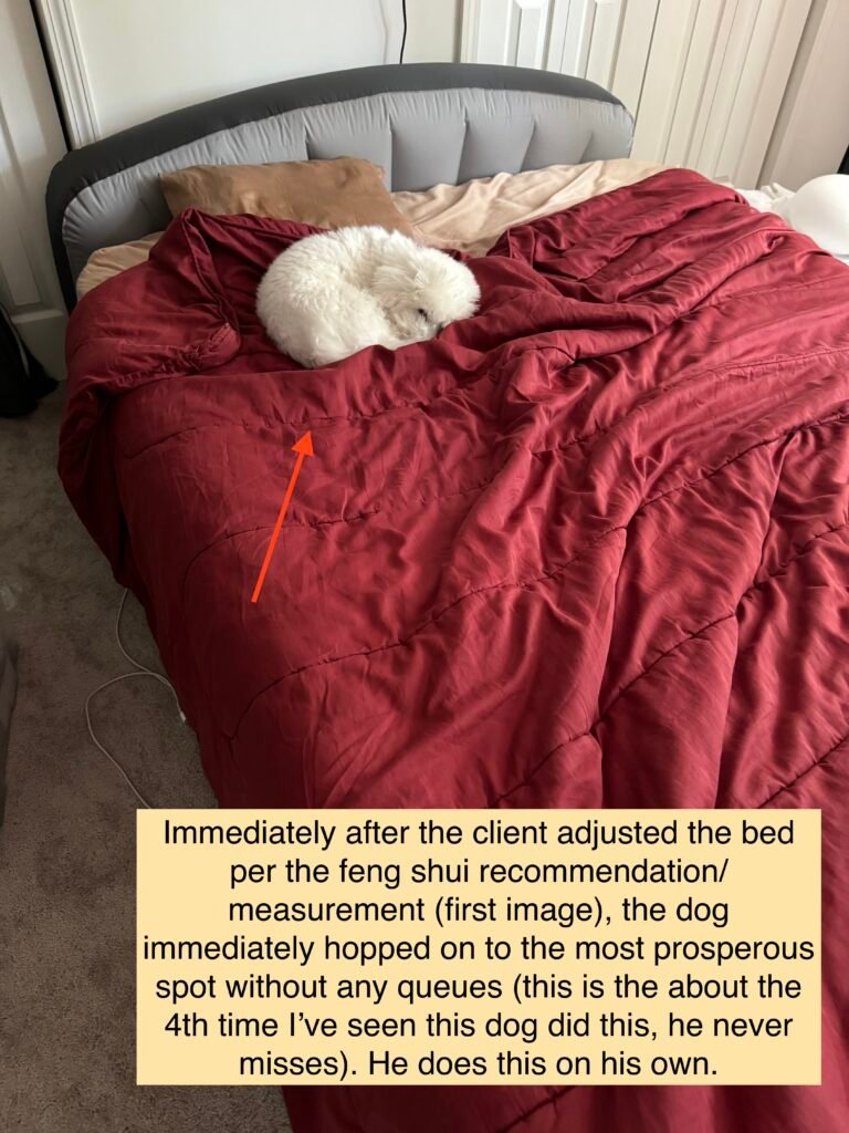 I’ve witnessed many lucky animals who repeatedly congregate in the lucky spots when you just kick off the initial alignment. One client, who loves opening all the windows, noticed her cats (3 cats) starting to throw up a lot since moving into the house within a month. Once I told her how to set up the house properly … .2 of her cats know exactly where to go naturally without human intervention, subsequently they stopped throwing up or had stomach issues. Her white cat…. Still needs training… he seems to only like the unlucky areas… that’s why he is being bullied by the other two cats, and he continues to throw up and poop everywhere in the house.