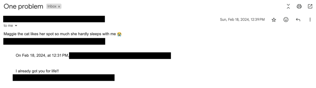 From her email thread below, she came with a list of issues that she hoped to address via feng shui – from health issues, to lackluster sales for her business, wishing to improve her mental health and relationship with others.