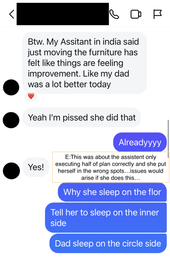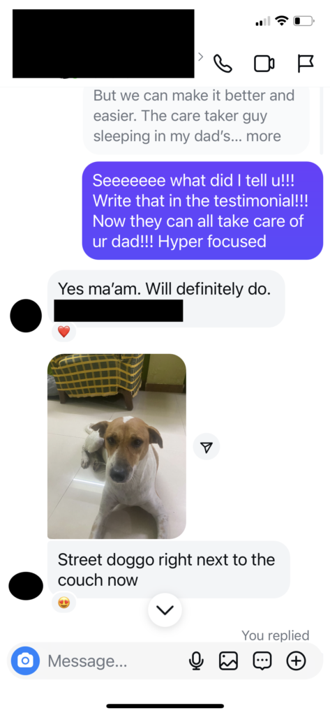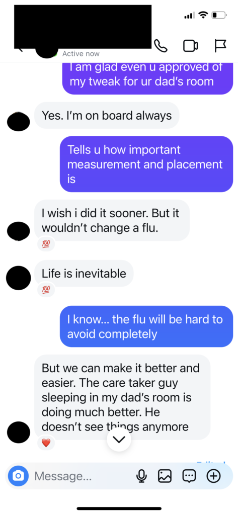 This client’s dad lives in India with two hired helpers to handle his day to day, in his late 80’s, has deteriorating Alzheimer’s. During Summer of 2024, the client came to me letting me know her dad has been in and out of the hospital several times in the past few months for various reasons. She hired two helpers to handle her dad’s day to day but for a while there had been a high turn over rate. Either the previous person would quit or a series of drama would happen to the helper who came highly recommended by someone she knows.