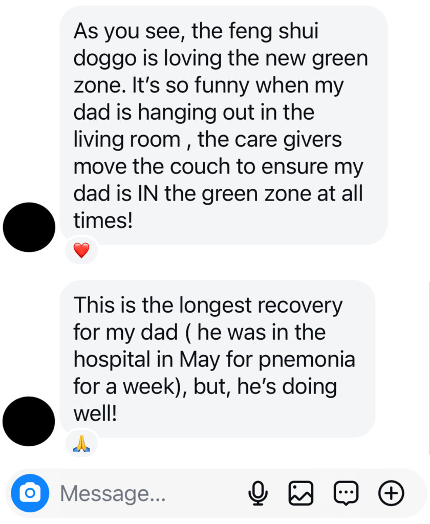 Obviously, with her dad’s age and multilayered health condition, feng shui cannot reverse things that’s already happened, it can only smooth out and slow down the aging process. There are many layers to health and feng shui. In this case shortly after the adjustments were locked in, the client experienced the helpers being less dramatic in their personal lives, but also happier and less turnover rate. The client was also able to take a nap at her dad’s apartment without “seeing” anything. Her dad is a fighter, while aging is inevitable, he experienced less dire health emergencies since the adjustment. He continued to be steady and doing well throughout 2025, no major health emergencies or issues with caretakers (last heard from client in Feb 2026).