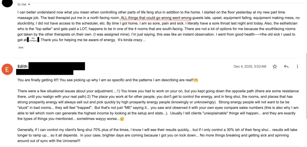 Example 1: Client Finally Able to Observe Feng Shui Patterns on Her Own