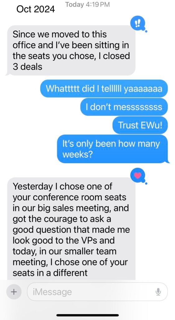 Mom’s work anxiety improved since the adjustment of her home and office. Previously she felt tired, foggy brain, and lack of motivation prior to adjusting her office seating even though she felt fine on her way to work daily. Once her seats are adjusted (pending if this is even possible), she feels more sharp and gets things done more efficiently. Things also come to her more easily compared to her old position when she felt sluggish sitting in her seat. When it comes to work and feng shui, there are many layers in how far the energy will take you and what you should do next and how much wealth a person can bring in. For assessment specific to your situation, please reach out to inquire about a reading to see if you’d be a good candidate for a consultation. For the most part, if the force is with you, you’d be guided down a smoother path over time.