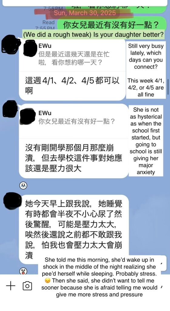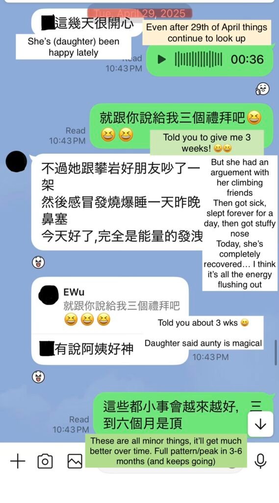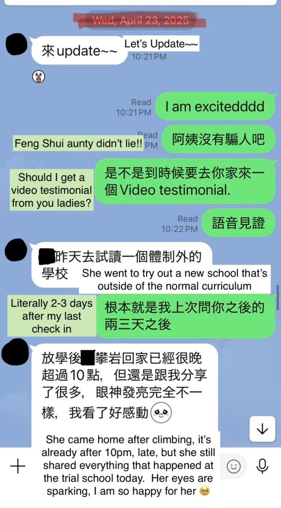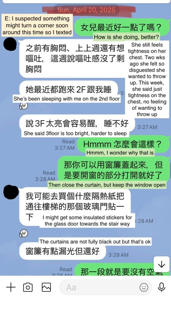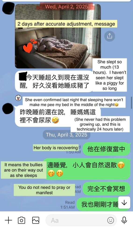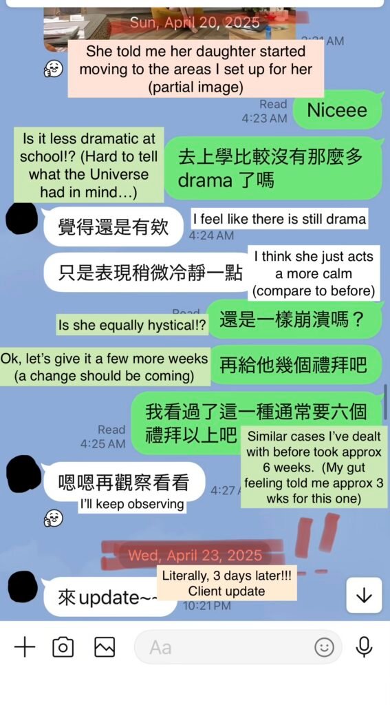Fast forward to March 2025, I got a message saying the daughter started in a new school, and started getting bullied by the whole class from day 1 (hard to imagine for a kid who is down to earth and always likeable growing up). Ended up with severe symptoms of all the things I listed above and had to go to weekly therapy. She was helpless, worried sick…. As she walked her daughter out of one of those therapy sessions, she somehow remembered what I said about her daughter’s room (back in Dec 2024).